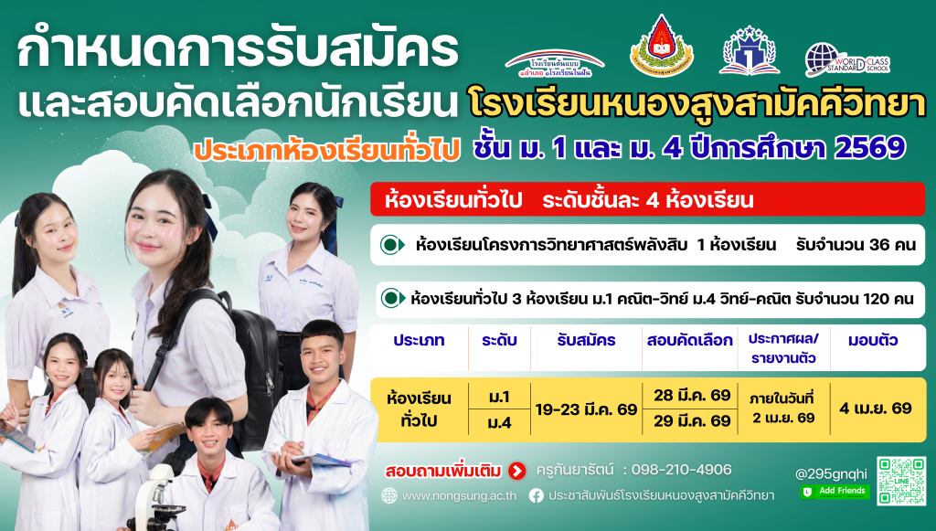 ประกาศรับสมัครเข้าศึกษาต่อชั้น ม. 1 และ ม.4 ปีการศึกษา 2569