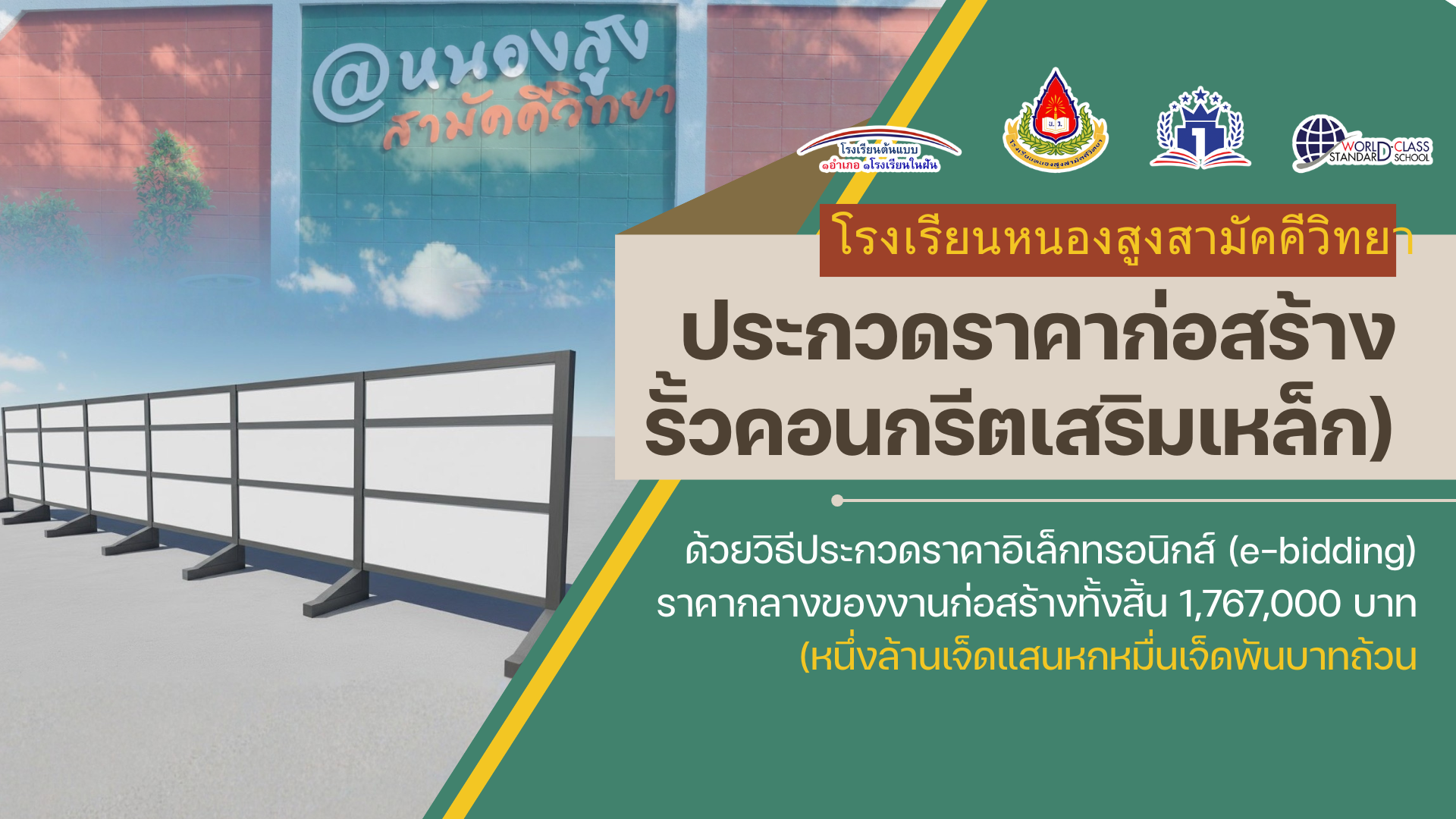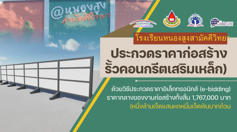 ประกวดราคาจ้างก่อสร้างรั้วคอนกรีตเสริมเหล็กของโรงเรียนหนองสูงสามัคคีวิทยา