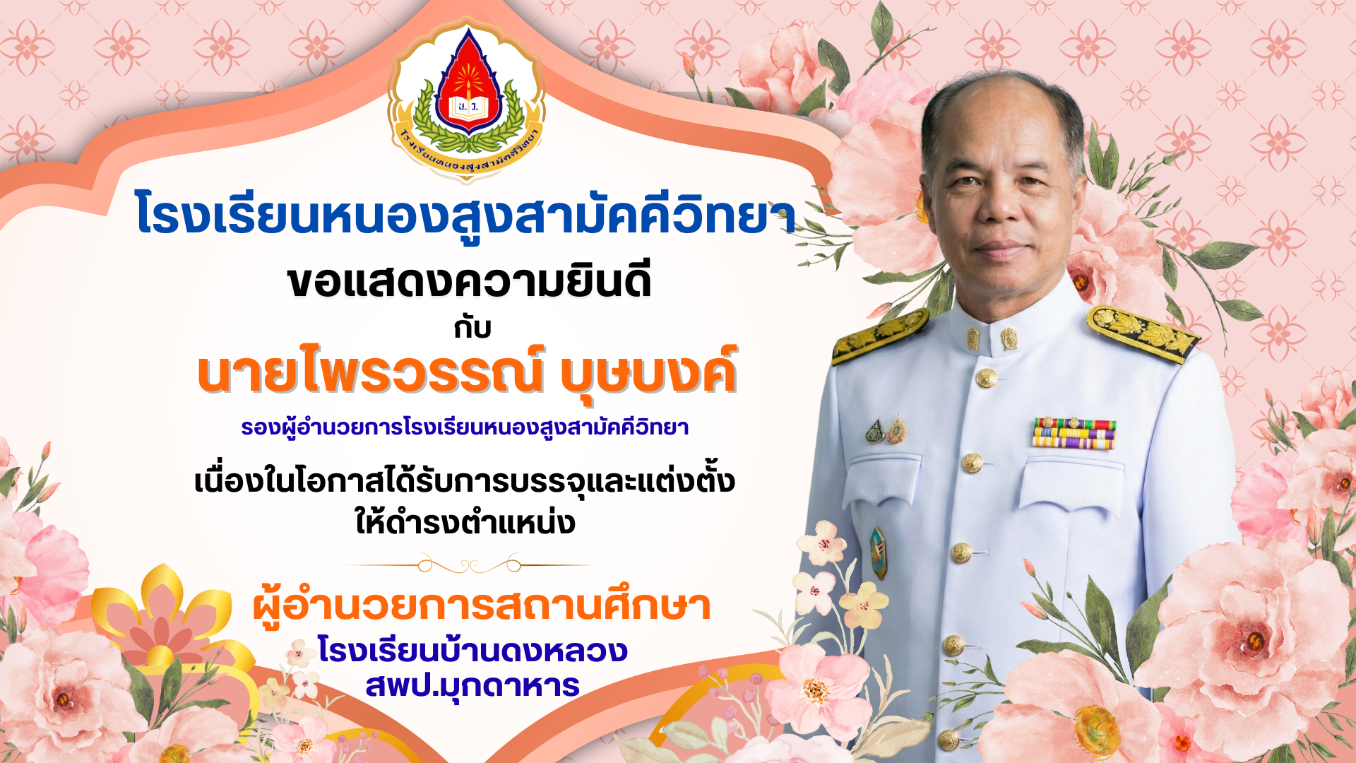 🎉 โรงเรียนหนองสูงสามัคคีวิทยา ขอแสดงความยินดีเป็นอย่างยิ่ง กับ นายไพรวรรณ์ บุษบงค์ รองผู้อำนวยการโรงเรียนหนองสูงสามัคคีวิทยา