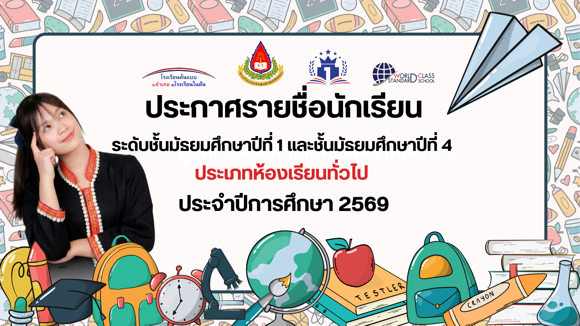 ข่าวประชาสัมพันธ์ ประกาศรายชื่อนักเรียนผู้มีสิทธิ์สอบคัดเลือก ม.1 และ ม.4 ประเภทห้องเรียนทั่วไป 25 มีนาคม 202625 มีนาคม 2026 admin ประกาศรายชื่อผู้มีสิทธิ์สอบประเภทห้องเรียนทั่วไป,ดาวน์โหลด FacebookFacebookXXLINELine